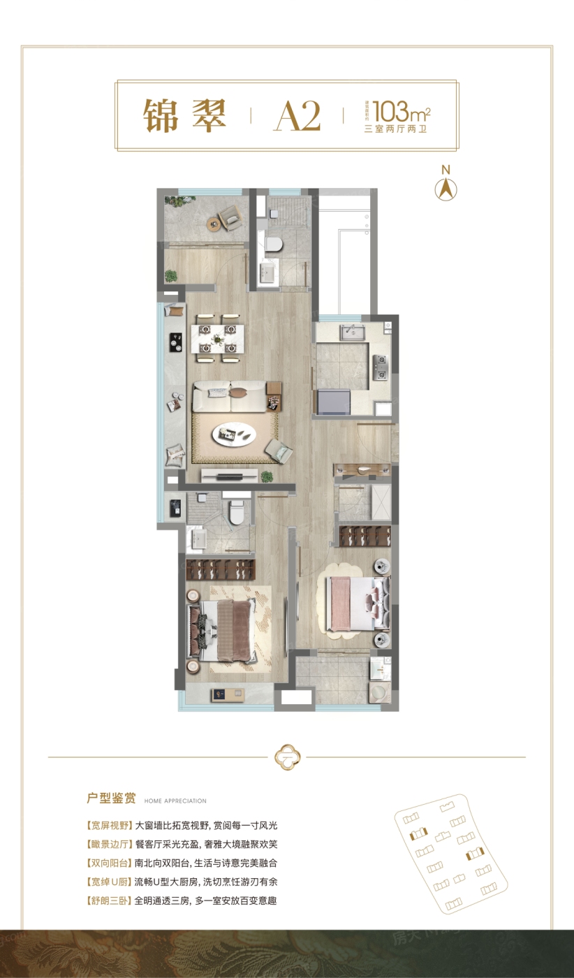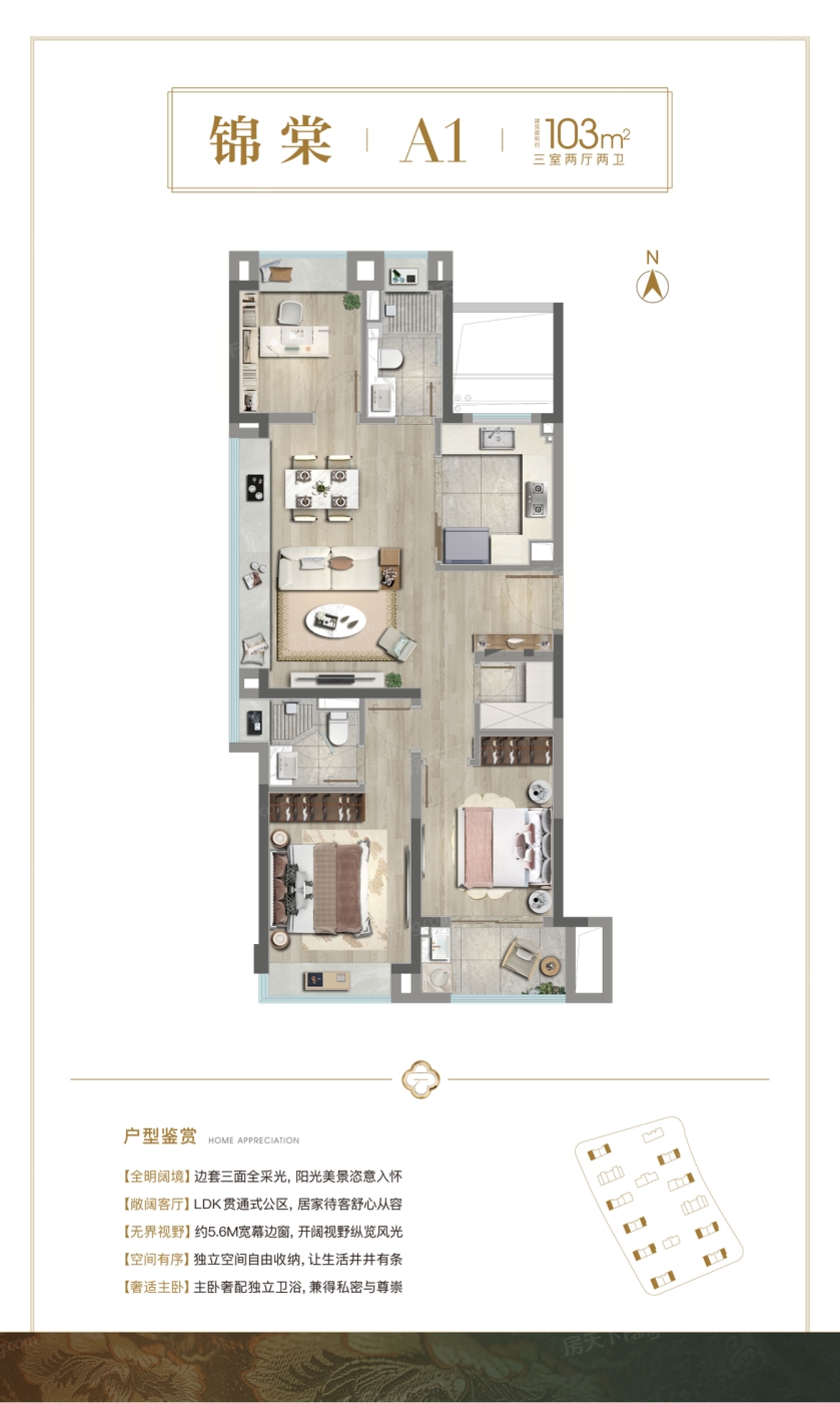 3室2厅1厨2卫 建面103.00㎡