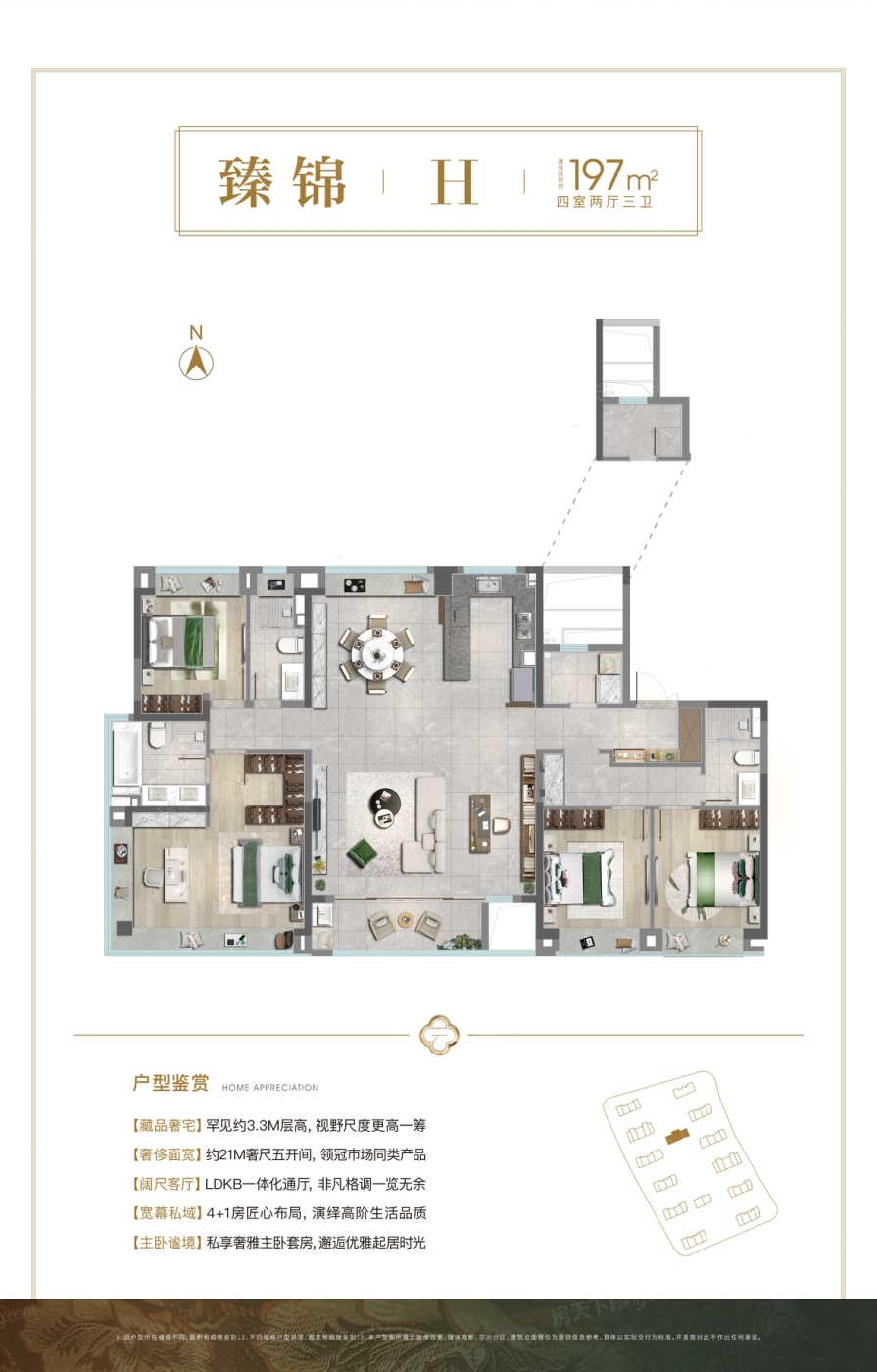 4室2厅1厨3卫 建面197.00㎡