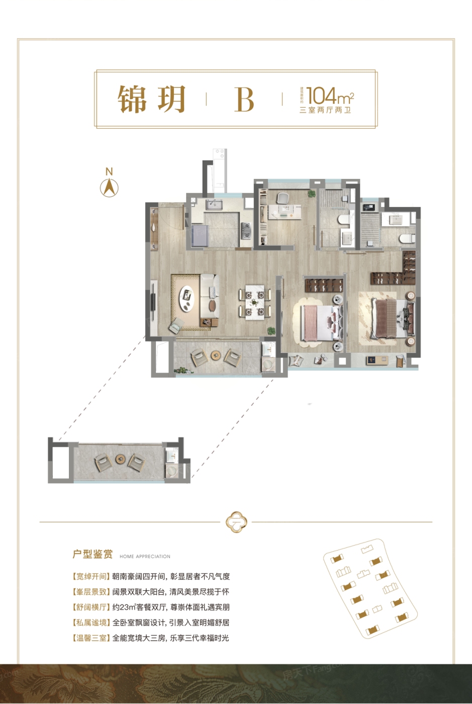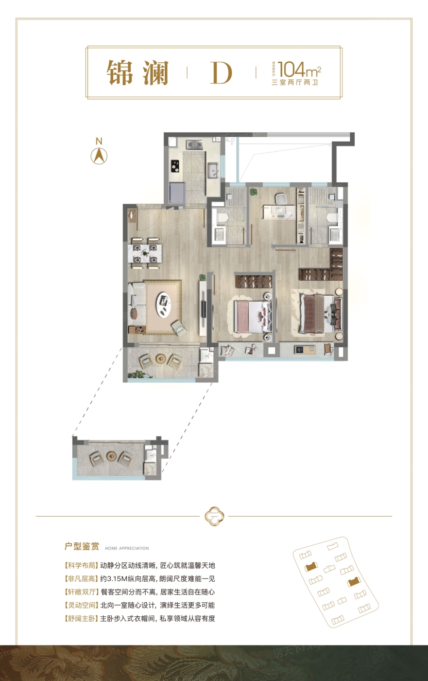 3室2厅1厨2卫 建面104.00㎡