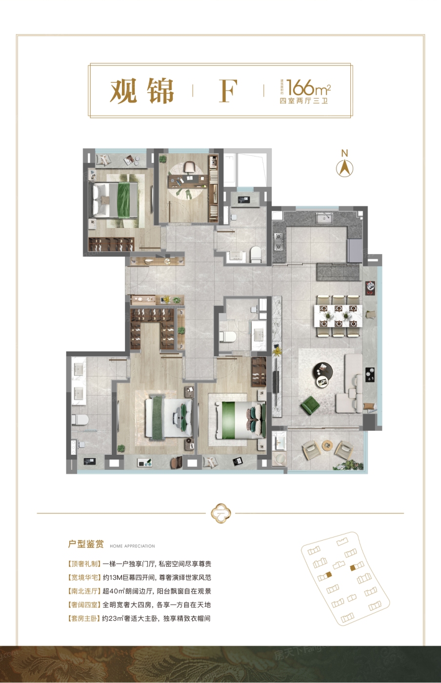 4室2厅1厨3卫 建面166.00㎡