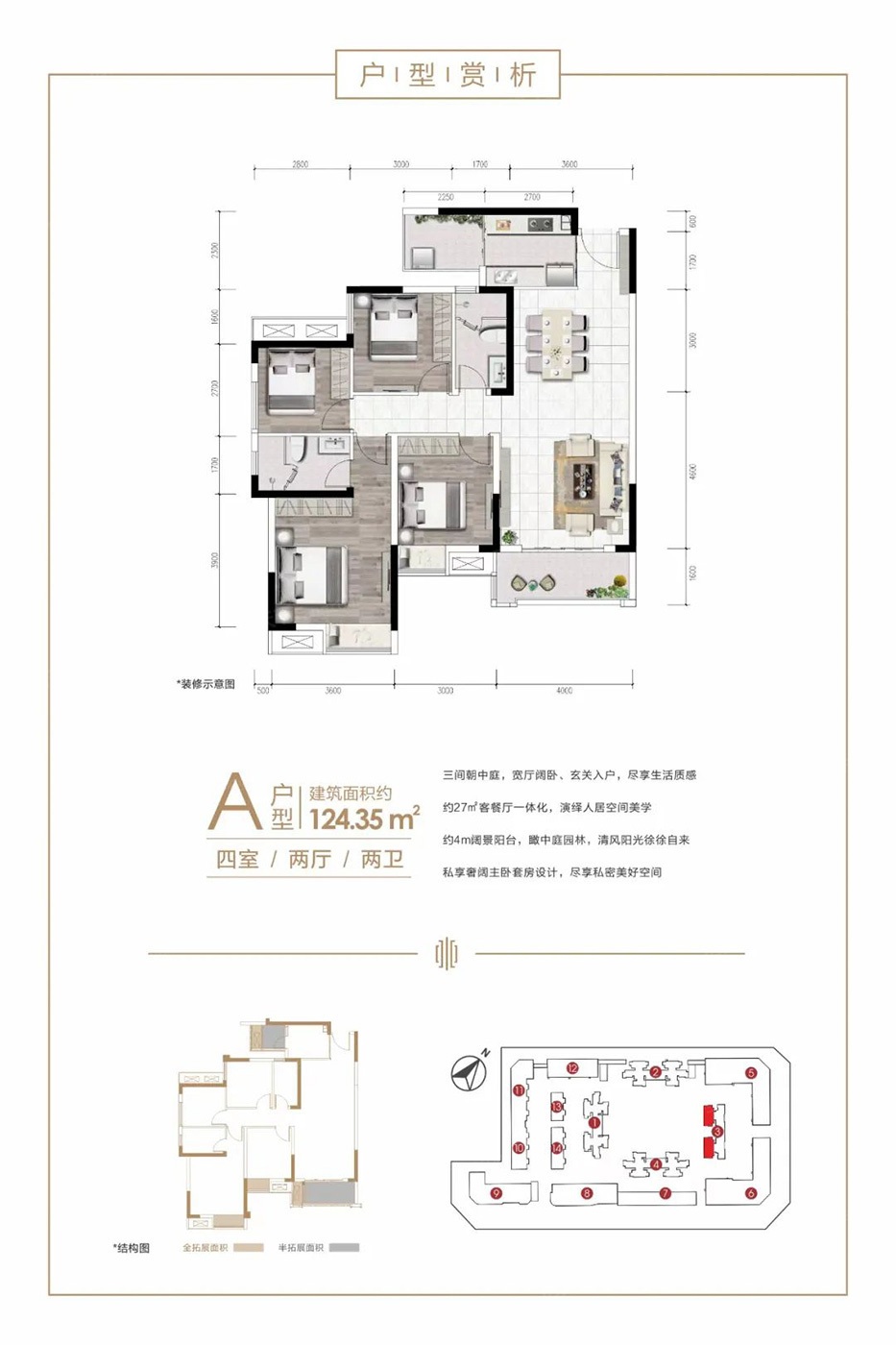 14***98瀚城丽都有4种户型,面积从108.06到124.35㎡不等,主要是三居和四居。小区环境很好,户型性价比高,采光也很好。大部分是南北通透的户型,而且对于卫生间位于中间的设计,开发商做了优化,避免了入户门正对卫生间的问题。总体来说,居住舒适度挺高的。 -