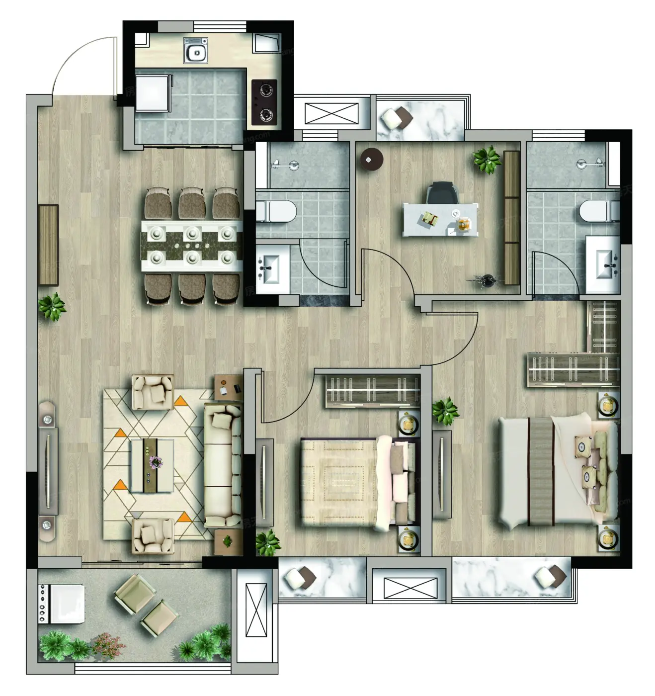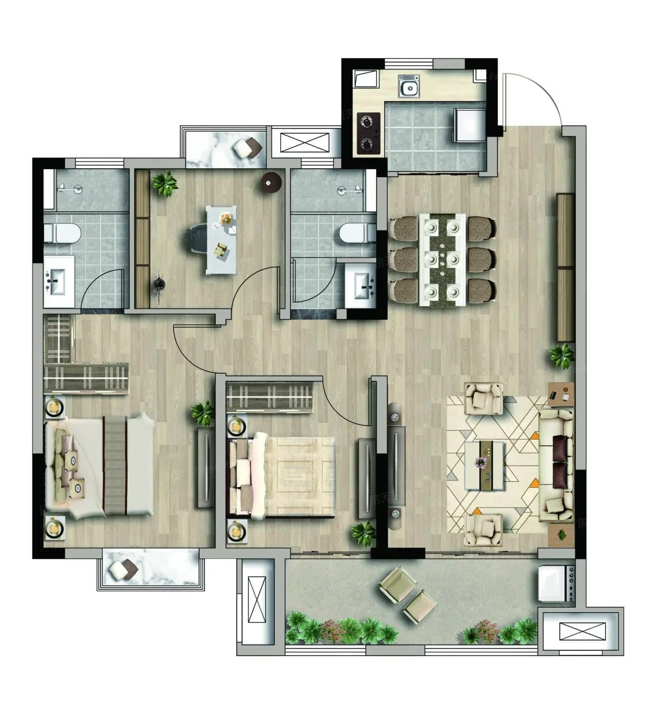 3室2厅1厨2卫 建面105.00㎡