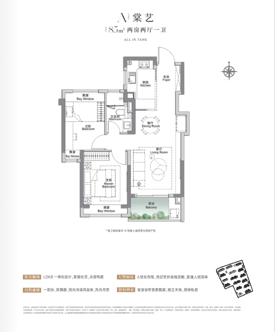 2室2厅1厨1卫 建面85.00㎡